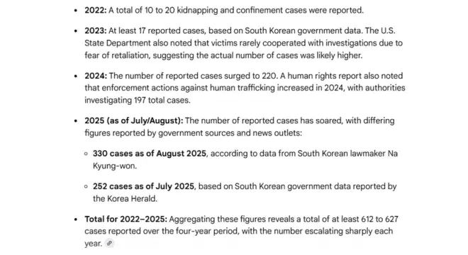 2025 (as of August) | 330 cases | News.Az citing lawmaker Na Kyung-won |